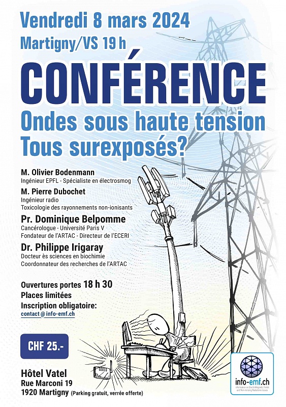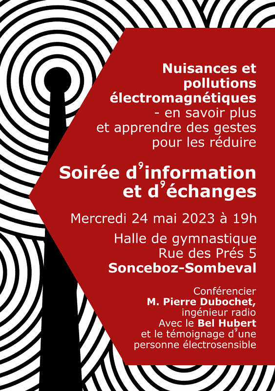 Pierre Dubochet, ingénieur radio, toxicologie des rayonnements non ionisants, tiendra une conférence sur le thème des risques liés aux différents champs électromagnétiques